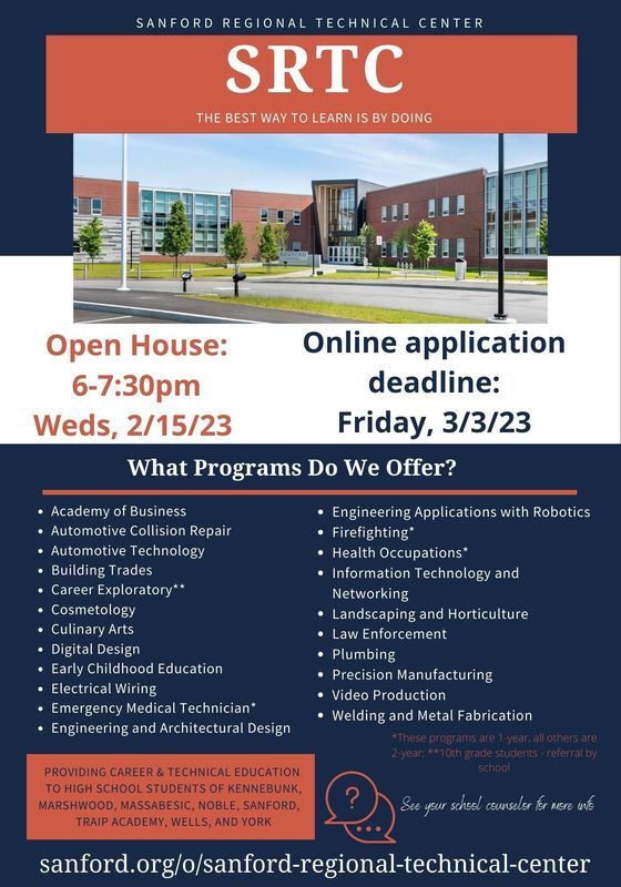 There is an admissions open house at Sanford Regional Technical Center on Wednesday, February 15th, for those who are interested in applying.