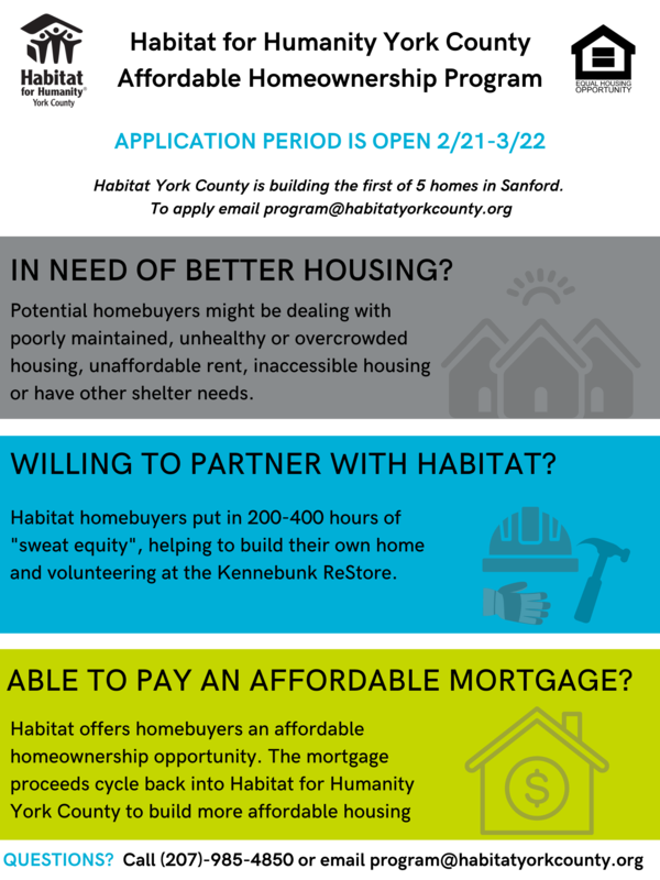 To apply, email program@habitatyorkcounty.org. The application period ends on March 22nd.