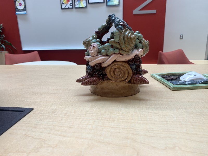 Senior Fayth Hill took inspiration from spirals to put into her sculpture of a coiled vessel.