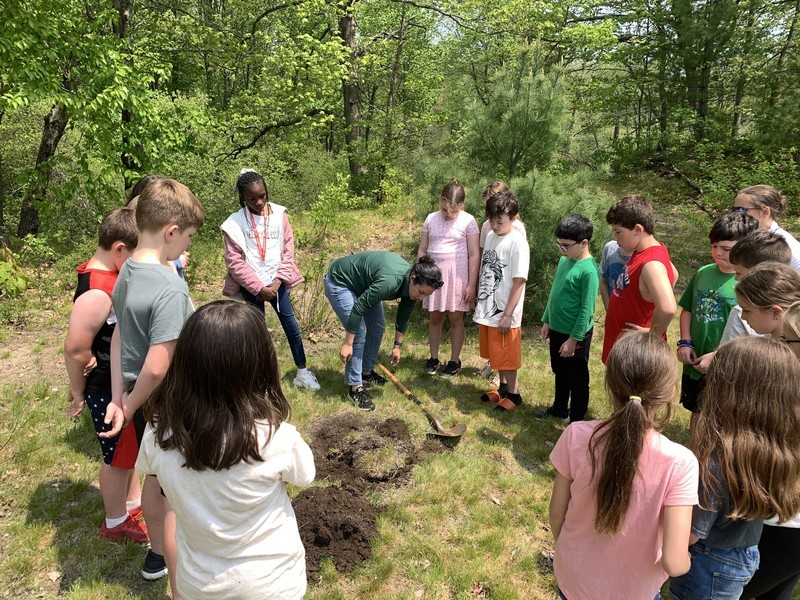 The students were attentive and willing to offer a helping hand while Katie Manende Hall worked to plant the donated tree along the side of the school.