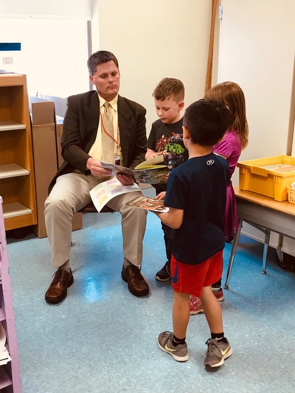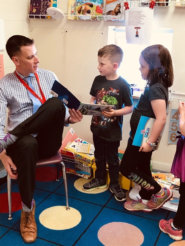 On June 4th Mrs. Ackroyd's kindergarteners' super reader powers were on full display. Several guests visited Mrs. Ackroyd's class. Some of the guests were School Committee member John Roux, Superintendent Matt Nelson, and Assistant Superintendent Steve Bussiere. The kindergarteners had the opportunity to read to each guest, and their super reader powers were successfully being used. Through the Lucy Calkins reading program all of Sanford's kindergarteners have learned to point to each word; use the picture as a clue for meaning; recognize high frequency or snap words; reread a section of the story and more. Our students are becoming super readers.
