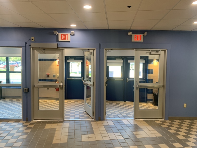They also created a new welcoming vestibule at Carl J. Lamb School with upgraded LED lights, a new ceiling, and an updated reception counter. Additionally, they painted and gave the entire lobby at the school a facelift.