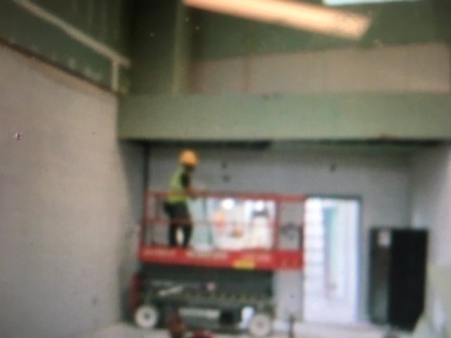 Drywall being installed in the gym.