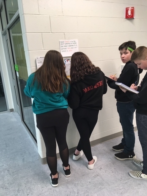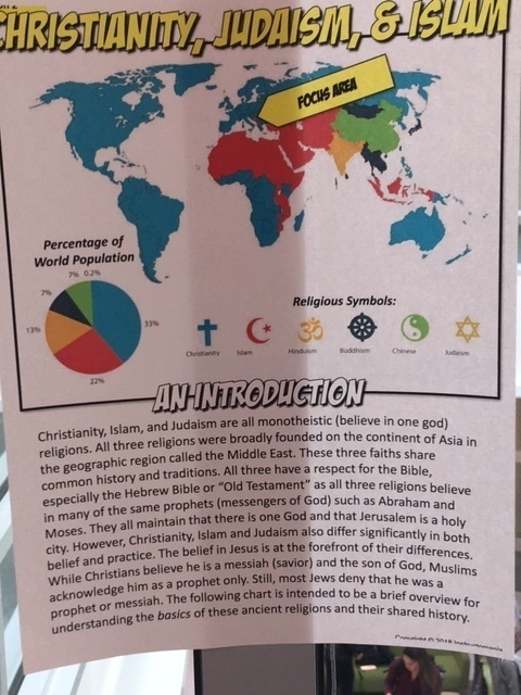 As I was walking about the 8th grade wing at Sanford High School I came upon Mrs. Fraser's 4th block social studies class. Mrs. Fraser's class was beginning a unit on different cultures around the world, and to create a better understanding of different countries' cultures around the world, her students were finding facts about the five major religions around the world. Mrs. Fraser explained she was having her students start by looking briefly at the different religions since many countries' culture is heavily influenced by the main religion there. The students were working hard finding facts about Christianity, Judaism, Islam, Hinduism and Buddhism. Students worked hard collaborating as they checked their facts with each other.