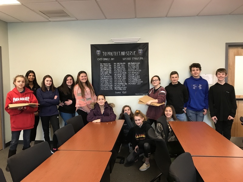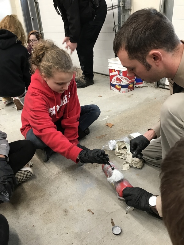 Thanks to Officer Sheldon, Detective Adams, Detective Allen and Officer Small, JMG students with an interest in learning about careers in law enforcement, had the opportunity to tour the Sanford PD, practice "solving a crime" by casting footprints and taking fingerprints, and were able to thank our police officers with a beautiful banner some of the 8th graders worked together to create. Students also brought Gatorade, snack bars, pens and more as a thank you to the officers.