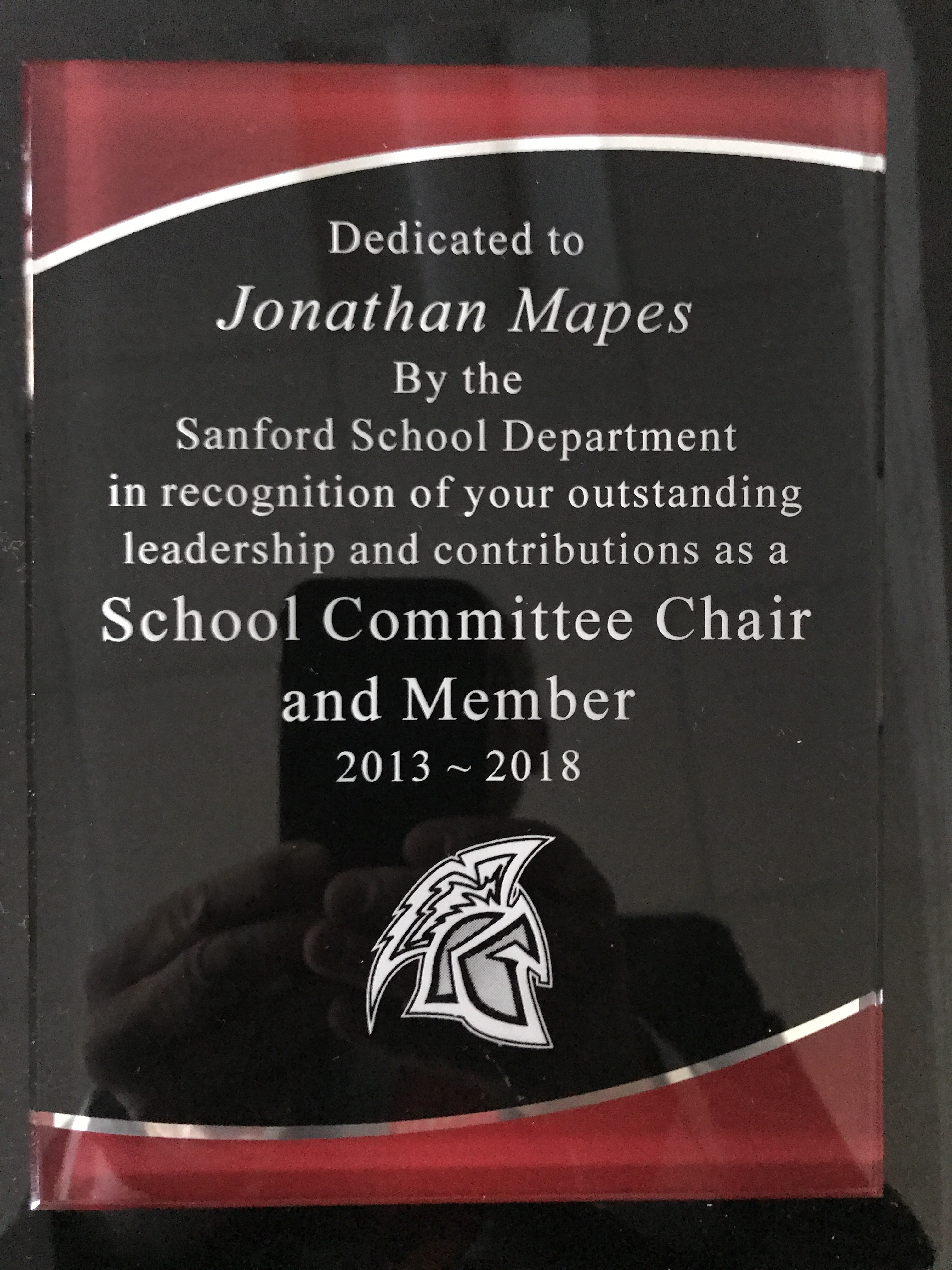 Kudos to Jon Mapes for 6 years of service on Sanford School Committee