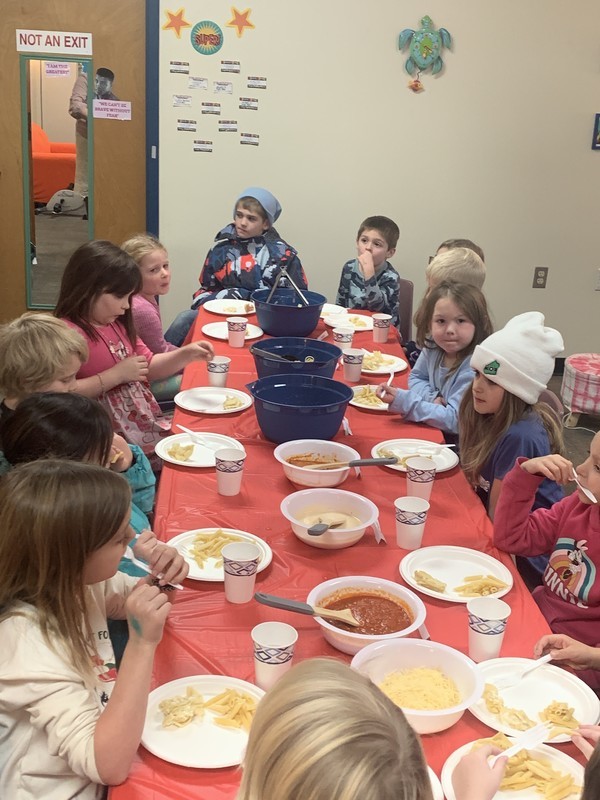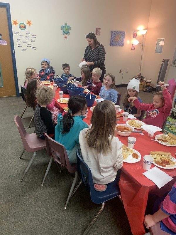 The students learned how pasta was originally made in Italy. For dinner, they tried various different types of pasta from gnocchi, to penne, to spaghetti, and more.