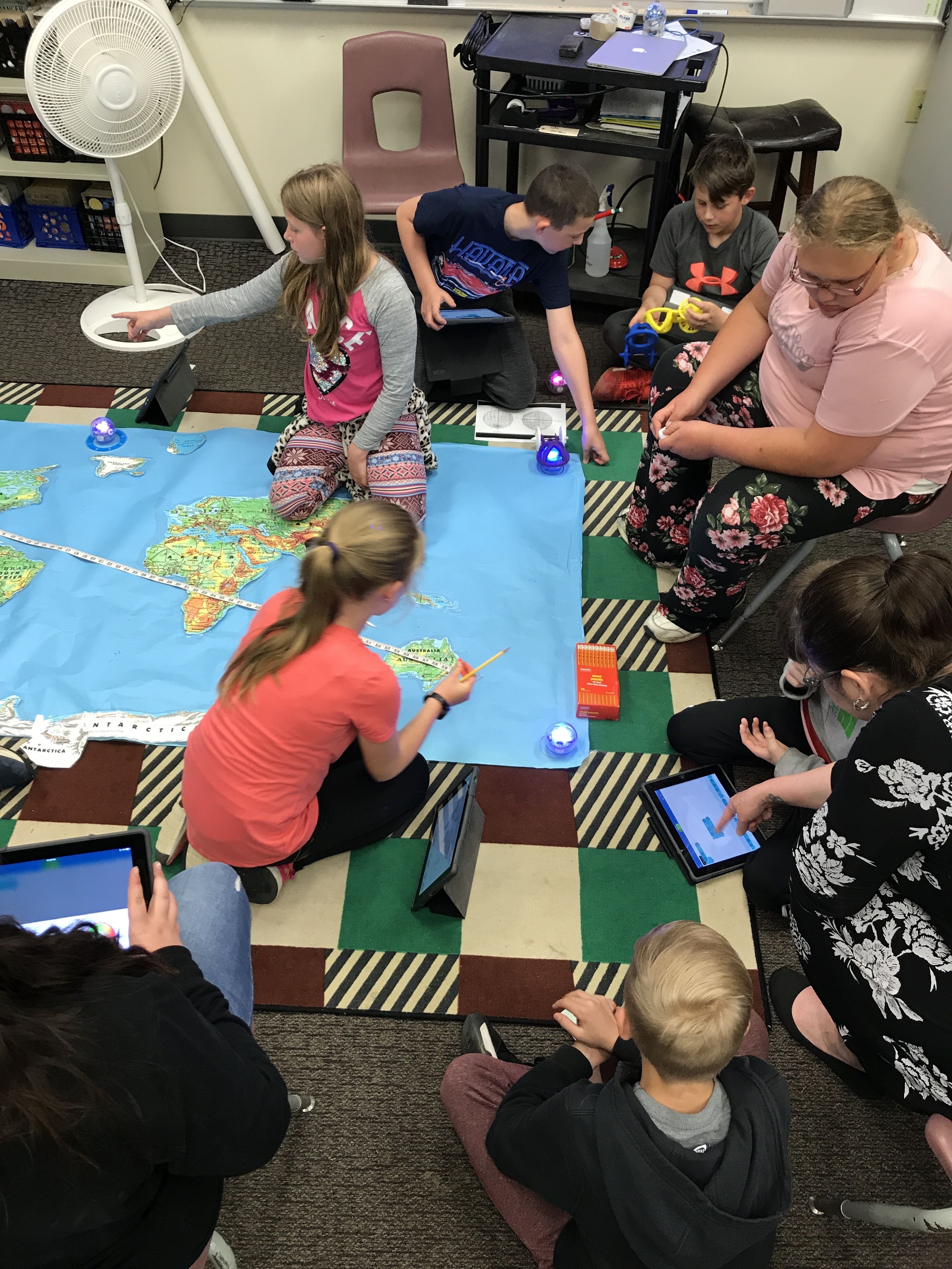 Ms. Greene's 5th grade homeroom class was invited to participate in a STEM activity, learning coding using Sphero robotics and iPads. Ms. Cole and Mrs. Rosa, Sanford Schools' Technology Integrators brought this opportunity to us over several days. The activity involved coding, mathematics and teamwork, and integrated the topics we used in the tech challenge: GPS coordinates, longitude/latitude, and specific locations where students had to code their robots to drive. The Spheros were awarded from a grant Ms. Cole wrote, and the chariots you see were printed by Mrs. Miliano in the CJL library, using 3-D printing! Enjoy these many photos and a short student-made video!