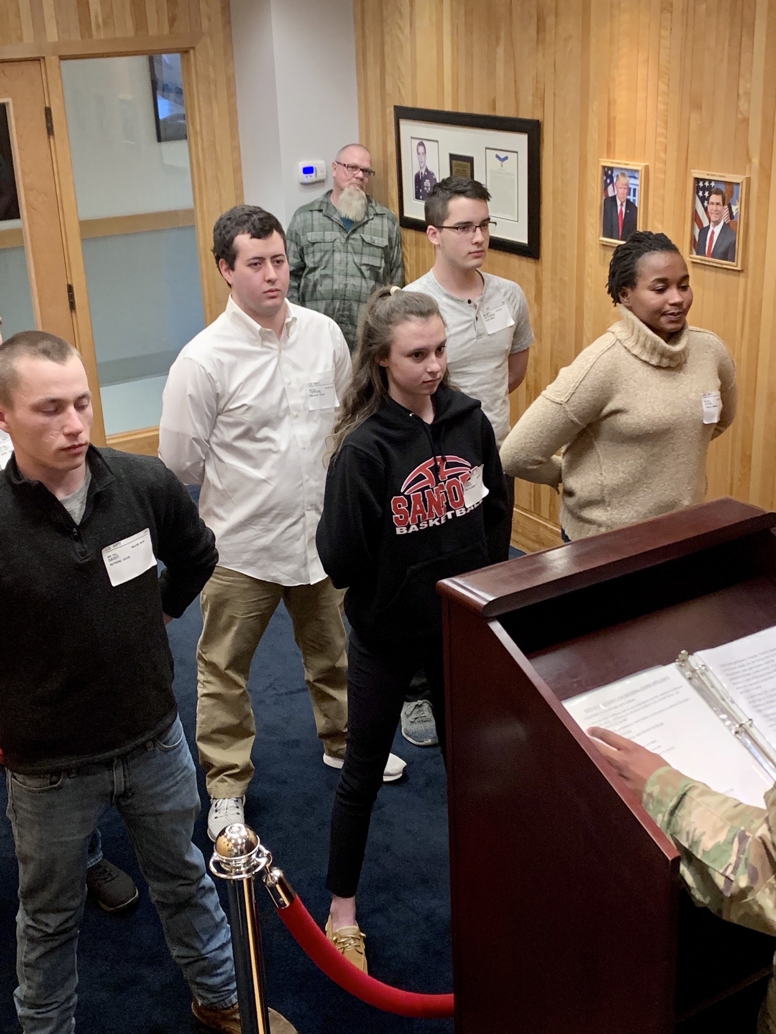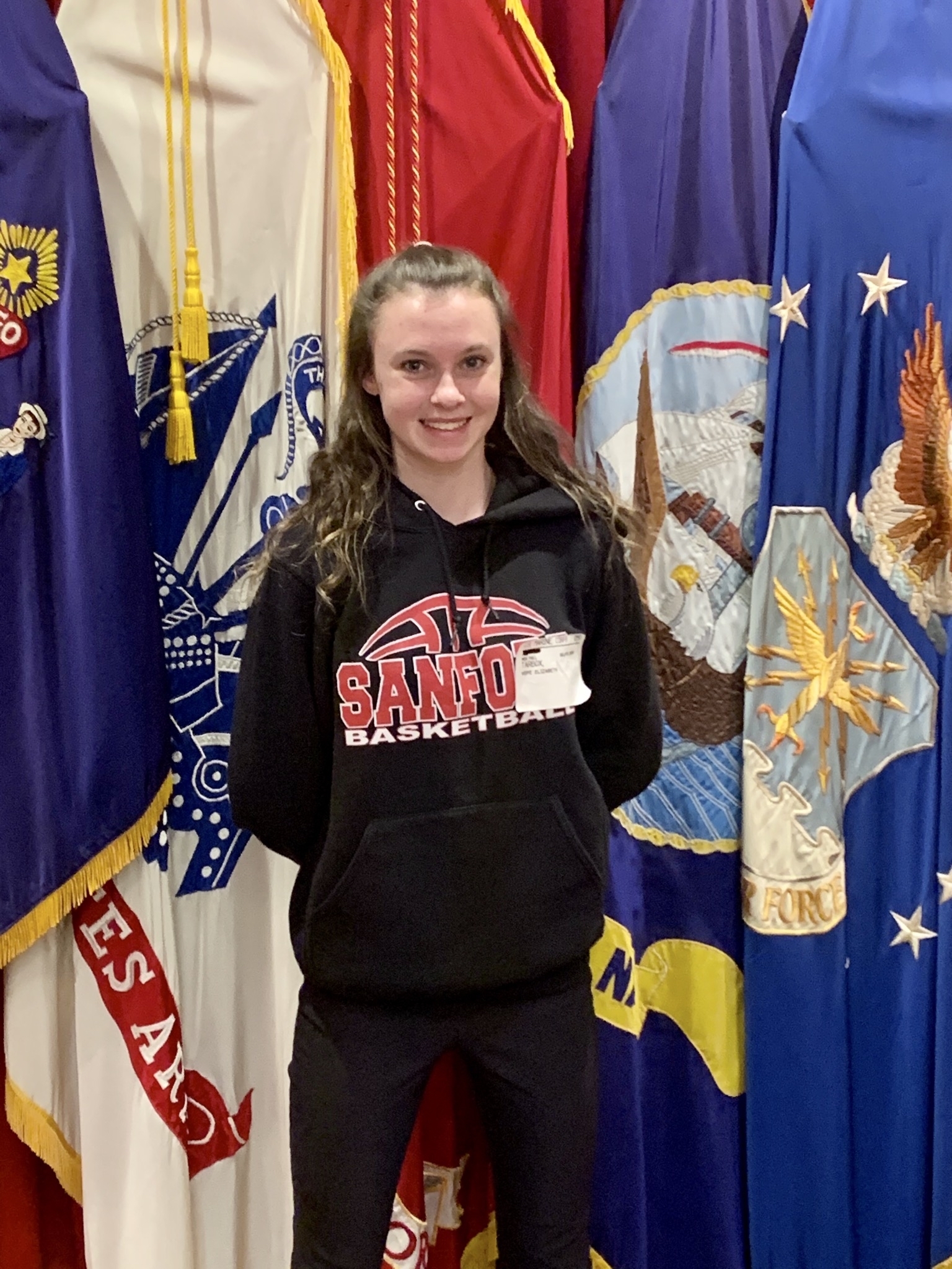 Sanford High School senior Hope Tarbox made a career decision today as she enlisted in the United States Marine Corps. The enlistment ceremony took place up in Portland today and her Varsity basketball coaches, Kearson and Preston, were there to document it and provide moral support! Hope will enter the service after SHS graduation in June. Congratulations Hope! Semper Fi! #SpartanPride
