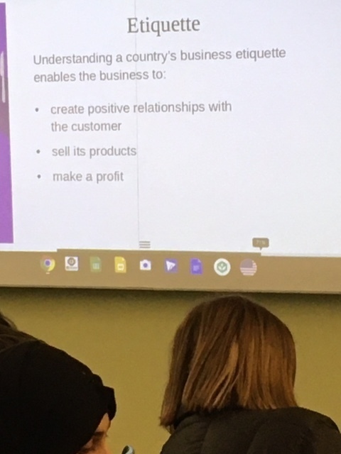 On Tuesday, February 11th, our 8th graders had JA Day.  JA Day is a day where volunteers with Junior Achievement spend the day teaching lessons that expose our students to the expectations in the business world.  Students were exposed to sessions on Global Trade, Business and Culture, Why Countries Specialize, Business Customer and more.